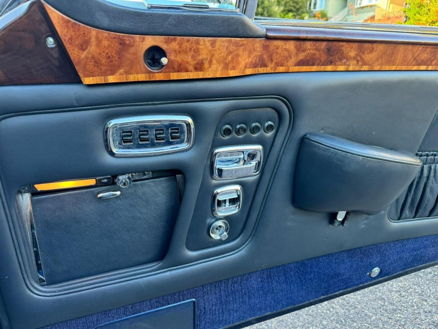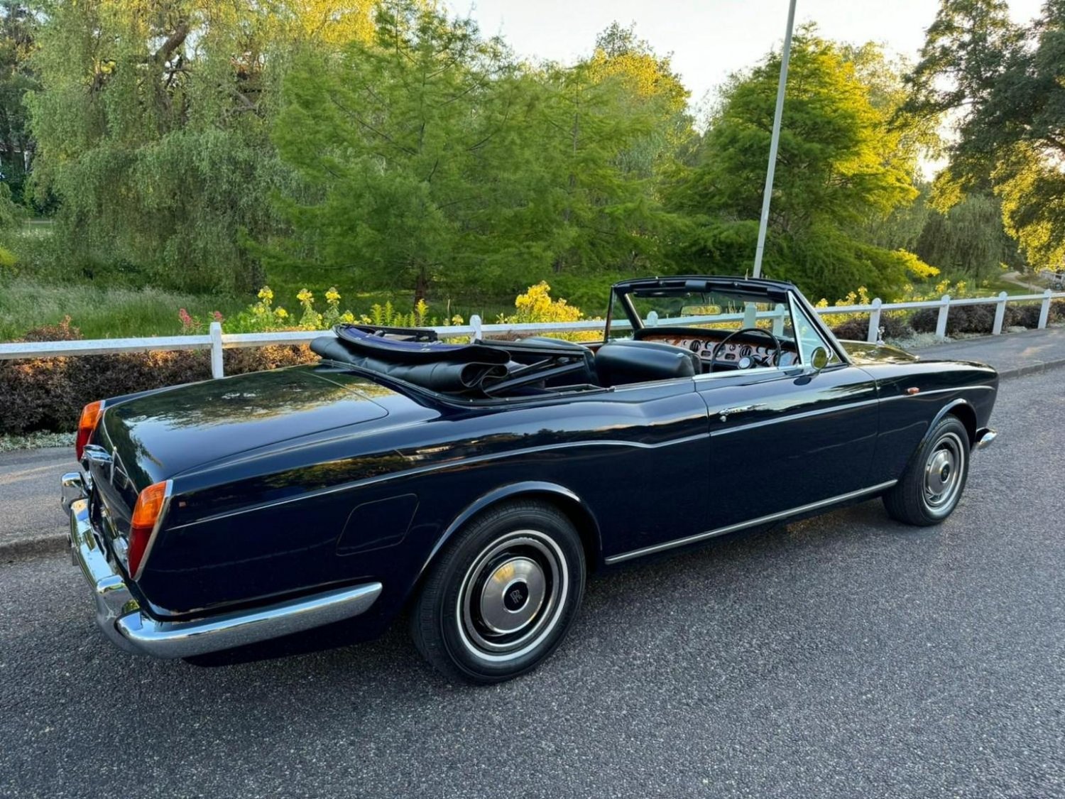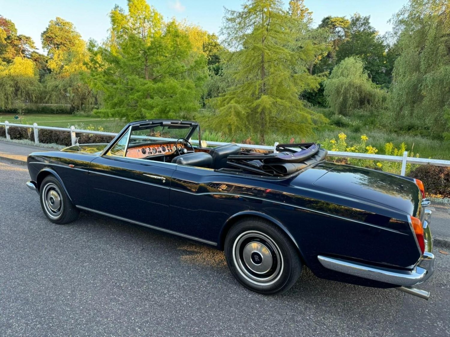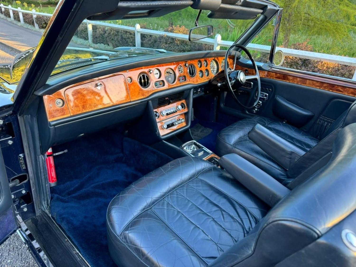 Finished in Stunning Oxford Blue with a Dark Blue Interior, Dark Blue Power Hood with Burr Walnut Veneer, This vehicle was extensively restored by the present owner in 2015 which included a repaint, New Hood, Chrome Work, Woodwork and Mechanical overhaul, Avon Whitewall Tyres, This vehicle has a large history file documenting all of the work carried out, If you are looking for unique opportunity to own one of the best Rolls-Royce Corniches in the country then this is the vehicle, Presented in Exceptional Condition Throughout.